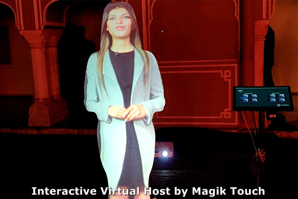 The Virtual Presenter can be programmed to activate by heat, movement sensor or be on a continuous loop with interactive functions, if required. Different on-demand messages can be delivered based on the customers selection through an interactive touch screen. The touch screen is located just in front of the projection.