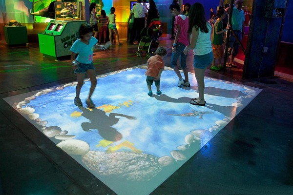 Another great application for an interactive floor is a wedding. The bride could be trailed by falling rose petals as she walks down the aisle. Later the floor could be set up to amuse kids as they play games such as soccer, hockey or even race cars on the projected floor. Many offices have developed much better patient relationships because of an interactive floor installed in lobbies or waiting rooms. Children are no longer afraid to return. Instead, they actually look forward to it!