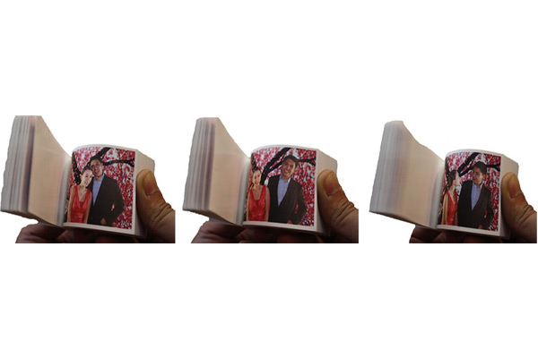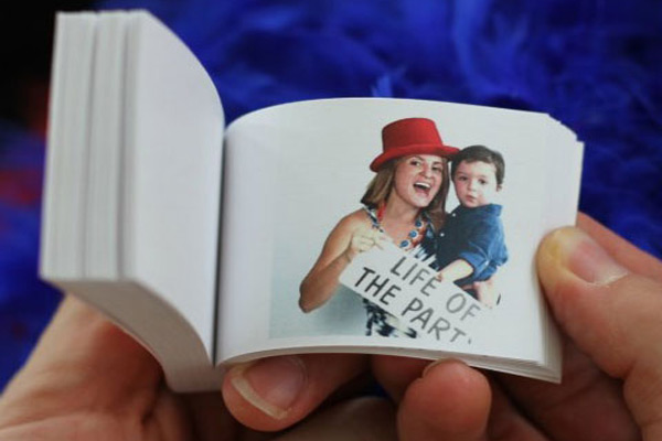 In less than 90 seconds, guests record a short video clip that is automatically transformed into a flip book. The flip book is then assembled and given to the guests to take home as a venue memorabilia. A flipbook is a series of pictures that give the illusion of a motion picture when you flip thru the pages.