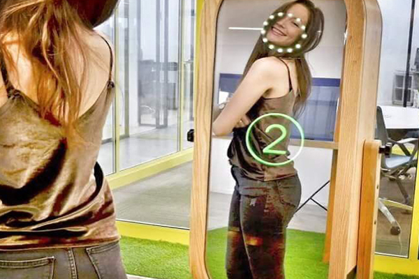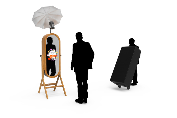 The Retro Selfie Mirror is a unique photo-generating product offering the latest technology in interactive picture taking. The wooden oval mirror offers a smart design and a user-friendly interface, communicating with guests with colorful animations and entertaining voice guidance.
